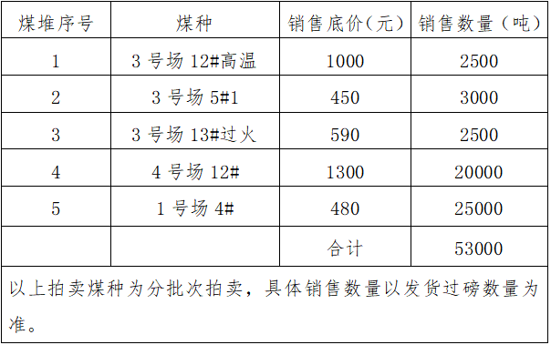 (3)競(jìng)拍流程:以我公司報(bào)出的煤種銷(xiāo)售競(jìng)拍價(jià),現(xiàn)場(chǎng)人員舉號(hào)牌報(bào)價(jià),報(bào)價(jià)最高者中標(biāo)。