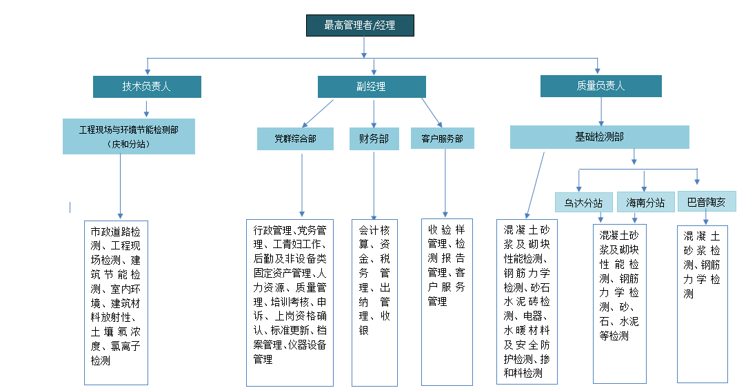 公司現(xiàn)設(shè)5個(gè)部門,分別為黨群綜合部、財(cái)務(wù)部、客戶服務(wù)部、基礎(chǔ)檢測部、工程現(xiàn)場及環(huán)境節(jié)能檢測部。公司現(xiàn)有員工38人,其中本科學(xué)歷31人、大專學(xué)歷2人、大專以下5人;二級注冊結(jié)構(gòu)工程師1名,高級職稱7名,中級職稱10名,初級職稱13名。