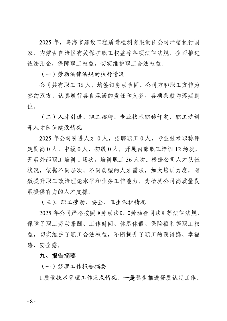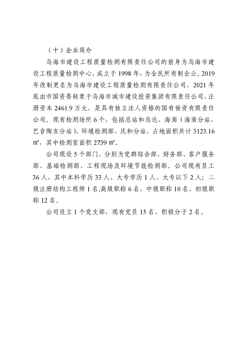 - 2025-03-10烏海市建設(shè)工程質(zhì)量檢測有限責(zé)任公司2024年度信息公開報(bào)告