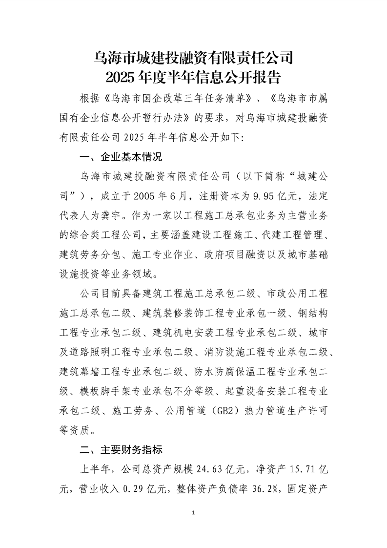 - 2025-10-22烏海市城建投融資有限責(zé)任公司2025年度第三季度信息公開(kāi)