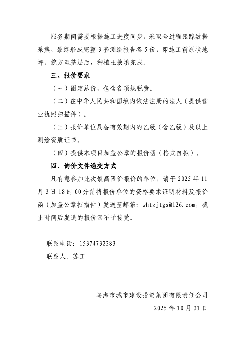 - 2025-12-15“烏海城投集團”微信公眾平臺服務(wù)項詢價公告