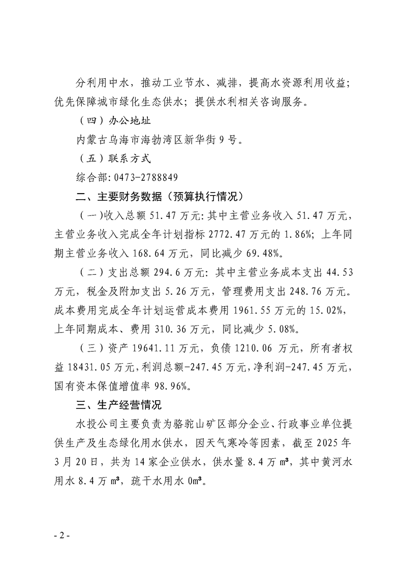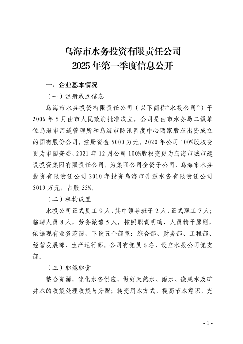 - 2025-07-28烏海市水務(wù)投資有限責(zé)任公司2025年第二季度信息公開