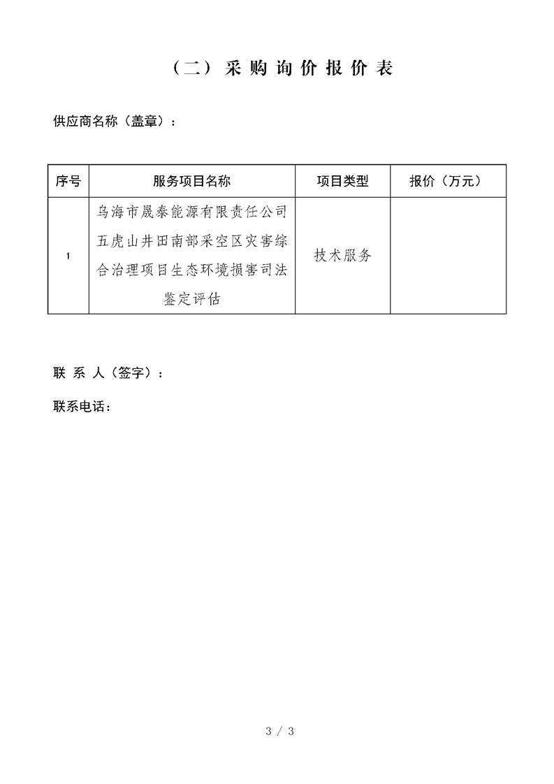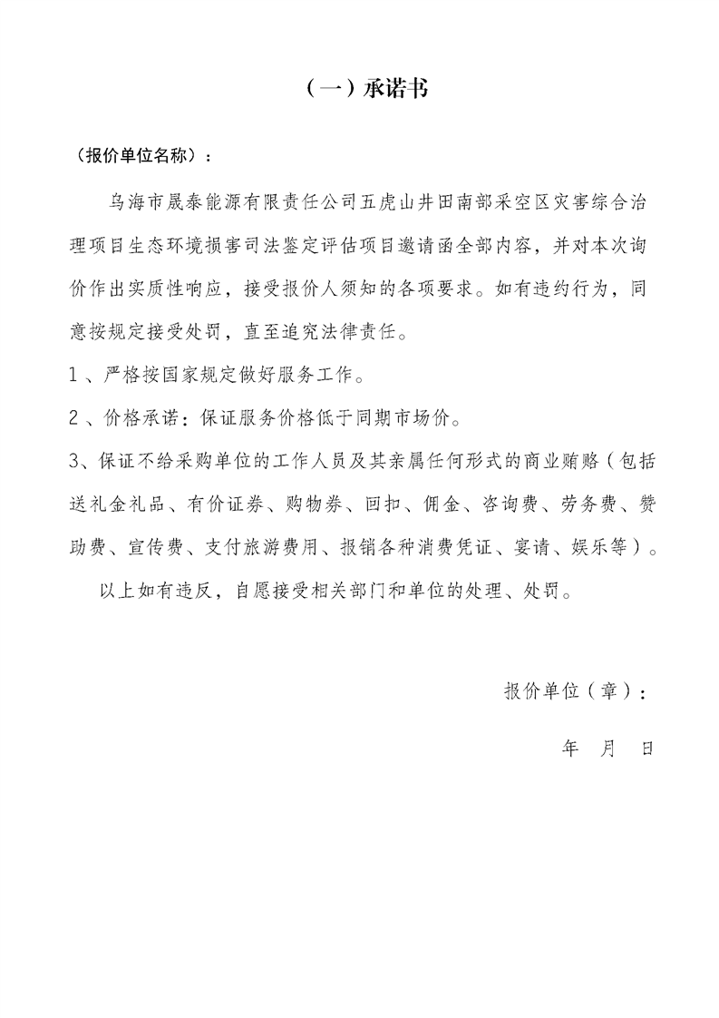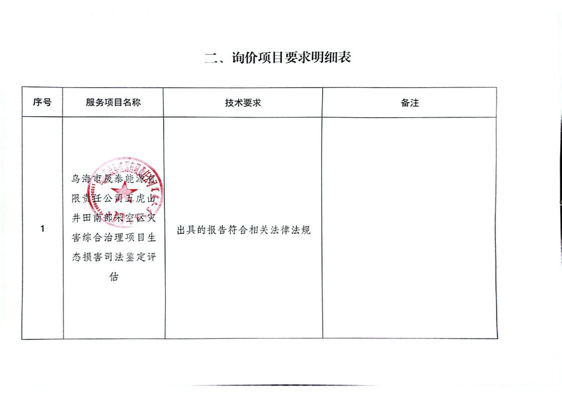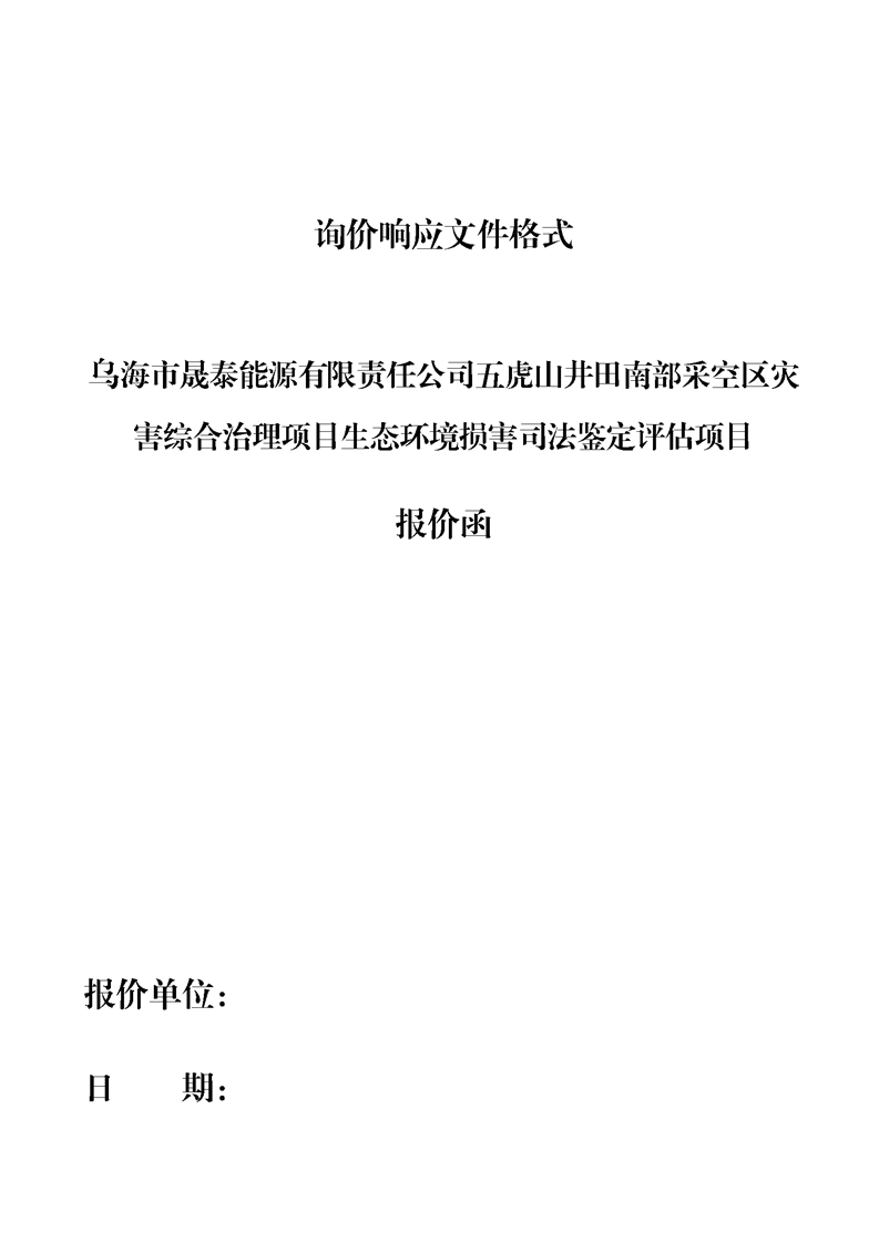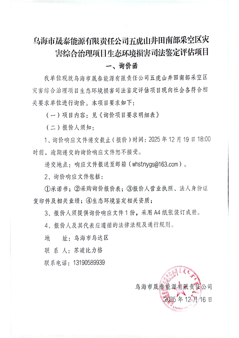 烏海市晟泰能源有限責(zé)任公司五虎山井田南部采空區(qū)災(zāi)害綜合治理項目生態(tài)環(huán)境損害司法鑒定評估項目詢價公告