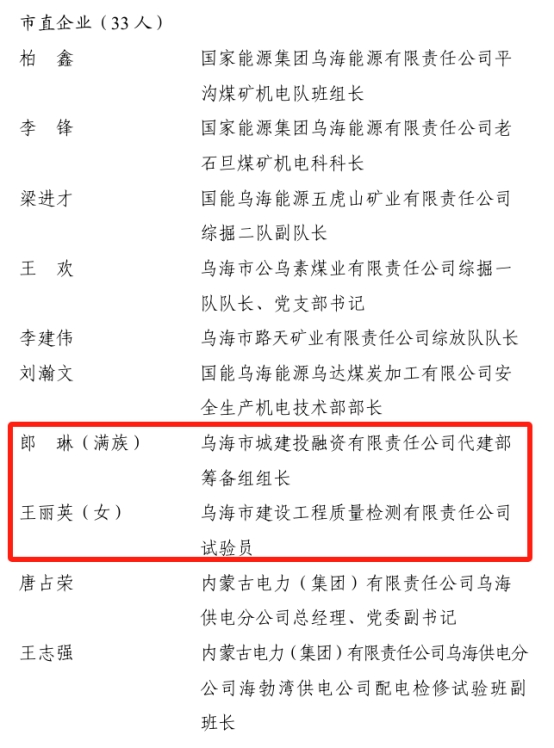 烏海市表彰勞動(dòng)模范與先進(jìn)工作者!城投集團(tuán)公司4名職工榜上有名