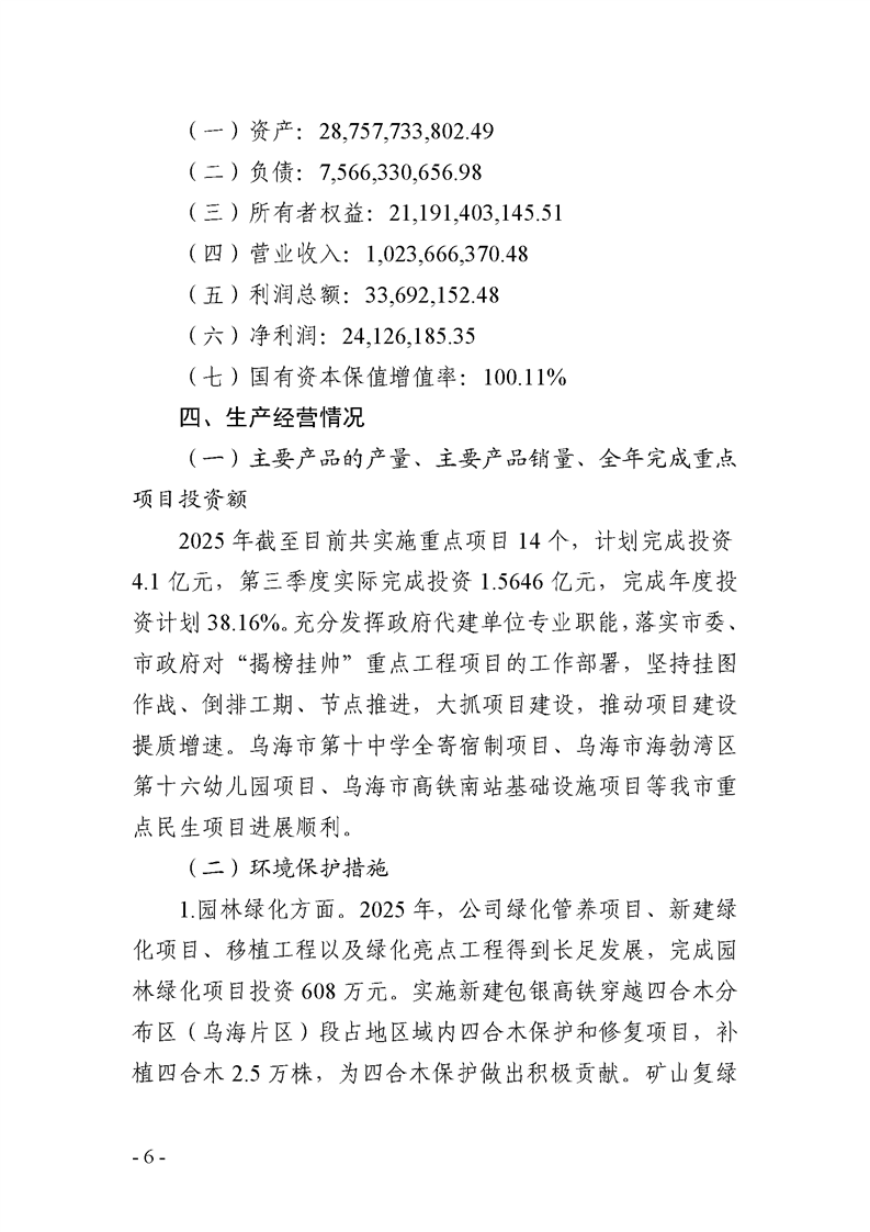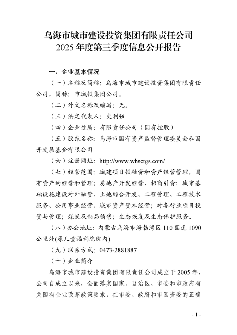 - 2025-04-23烏海市城市建設(shè)投資集團有限責任公司 2025年度第一季度信息公開報告